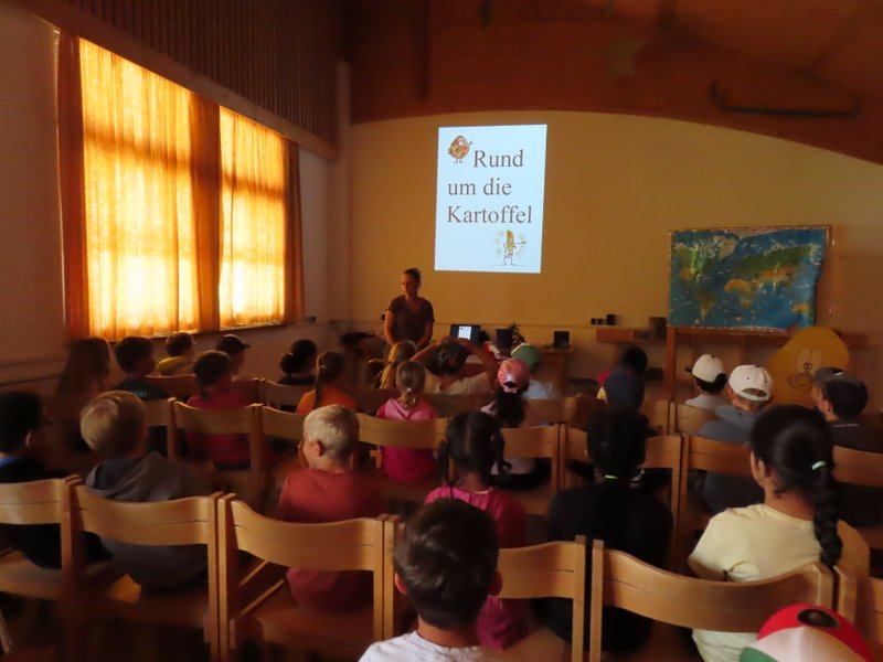 Dort erfuhren wir bei unserem Ausflug im Juli nämlich alles rund um die Kartoffel: Wie eine Kartoffelpflanze aussieht, wo sie wächst, woher sie kommt, was man aus ihr alles machen kann, welche Sorten es gibt und vieles, vieles mehr.