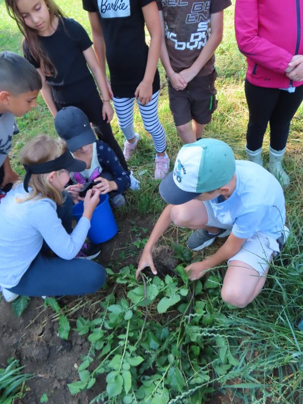 Wir durften auf einem Stückchen Acker Kartoffeln ernten. Wow: Da gab es sogar lila und rosa Knollen!