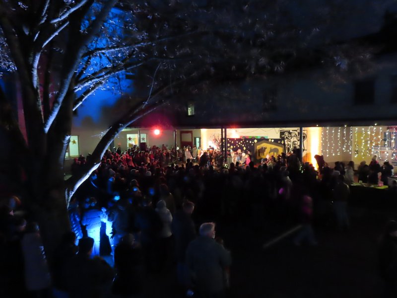 Der Erfolg des Abends war nicht allein den talentierten Kindern zu verdanken: Ein großer Dank geht an den engagierten Elternbeirat, der nicht nur den aufwändigen Auf- und Abbau des Innenhofs perfekt organisierte, sondern die Gäste auch mit heißem Glühwein und Kinderpunsch versorgte. Ebenfalls unverzichtbar waren unser Hausmeister Bernd Müller, der Lichtarrangeur Peter Lang und der Tontechniker Friedrich Daub sowie alle helfenden Hände, die im Hintergrund zum Gelingen dieses magischen „Adventstürchens“ beigetragen haben.